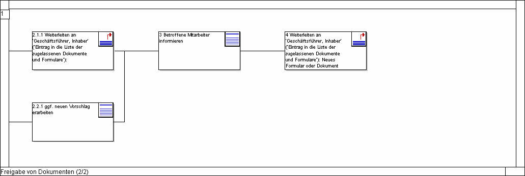 Die Freigabe erfolgt durch Hochsetzen des Versionszeigers und Eintrag in den Bemerkungen „freigegeben am ___ durch ___.“. Die überarbeiteten Teile werden als HTML-File generiert und im entsprechenden Verzeichnis veröffentlicht. Die Be-troffenen werden durch ein Mail, das einen Link zu dem File enthalten sollte, aufmerksam gemacht. Das Mail wird als Beleg archiviert.